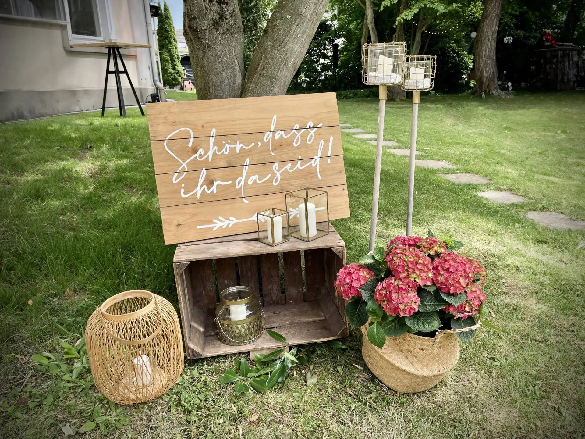 Ob stilvolle Tischdeko, besondere Schilder oder verschiedene Traubögen – in unserem umfangreichen Sortiment findet ihr die passenden Elemente für euer Event. Alles unkompliziert zum Mieten und individuell kombinierbar.